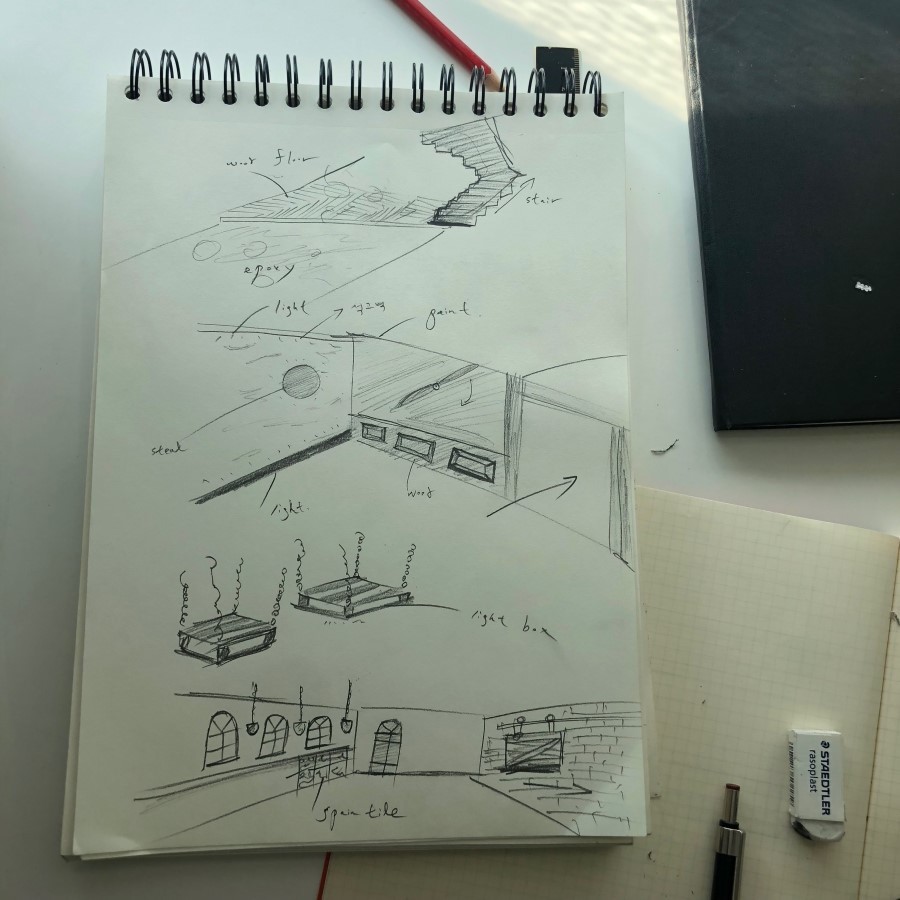 설계도면을 토대로 동선과 필요 장비들을 대입하여 도면이 완성되고 저는 디자인을 잡아나가기 시작했습니다.